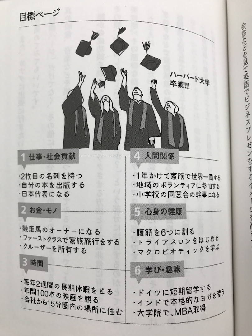 書き出したら、以下の6つの分野に分類し、目標ページにまとめます。