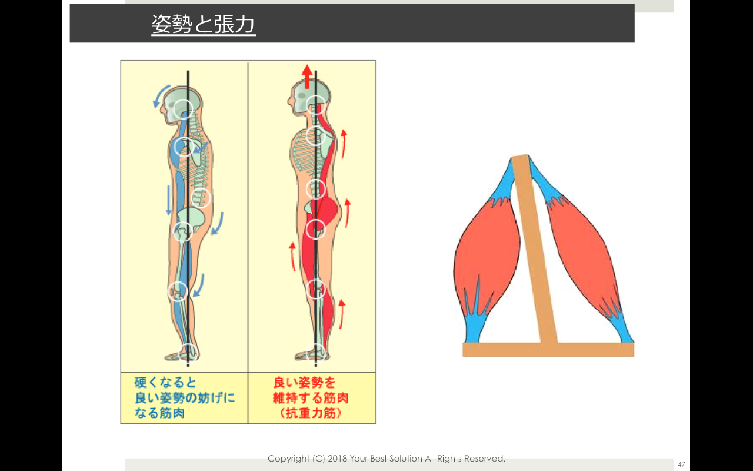 簡単にいえば、筋肉の張力のバランスで、身体の構造は維持されています。