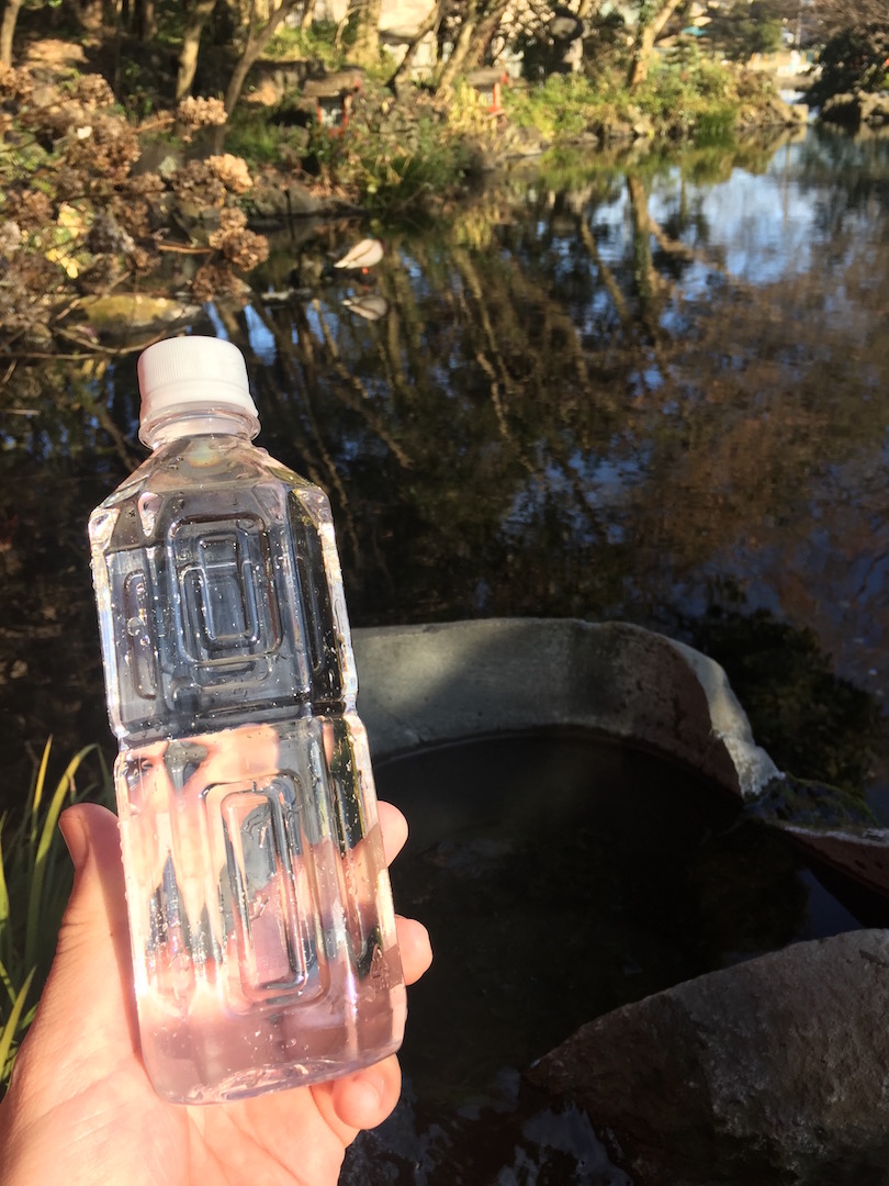 涌玉池を渡り、